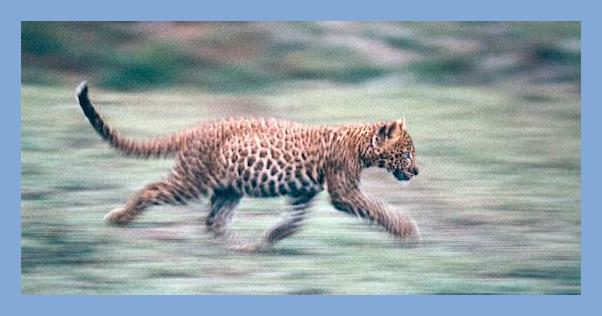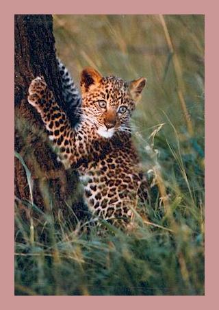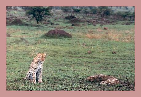 In November 1994, aged almost exactly one year, the careful Taratibu was one night killed by a lioness. We found her early the next morning dead in open terrain and could ascertain by the bite marks and paw prints in the mud that a lioness must have killed her. "We soon thereafter also discovered the lioness who likewise showed distinct signs of heavy fighting: Muddied scratch marks on the front part ofher body as well as a closed and heavily swollen eye with a bleeding scratch wound which surely the desperately resisting Taratibu had caused her in her death struggle. Lions are the sworn enemies of the leopards and let no opportunity pass tokill a leopard